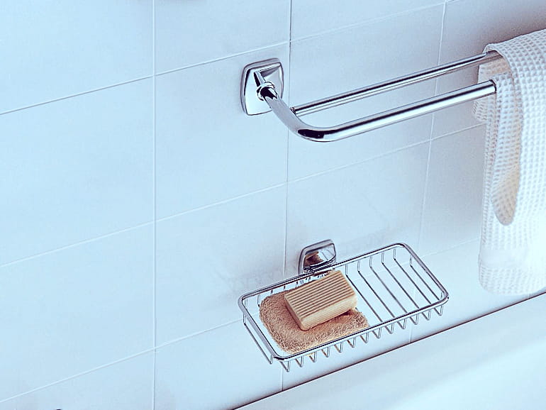 15 разнообразных коллекций, почти 300 предметов. Дозаторы и подстаканники, крючки и полки, полотенце- и бумагодержатели, ершики и стойки. Изготавливаются из латуни или стали, покрываются никелем, хромом или бронзой. Благодаря этому срок гарантии увеличен до 5 лет. При всей демократичности качество вполне достойное, позволяющее изделиям долго сохранять безупречный внешний вид и не ржаветь, несмотря на агрессивный микроклимат ванной комнаты. Комплектуются аксессуары элементами из прозрачного или матового стекла, а также разрисованной керамики. Крепление универсальное и максимально простое.
