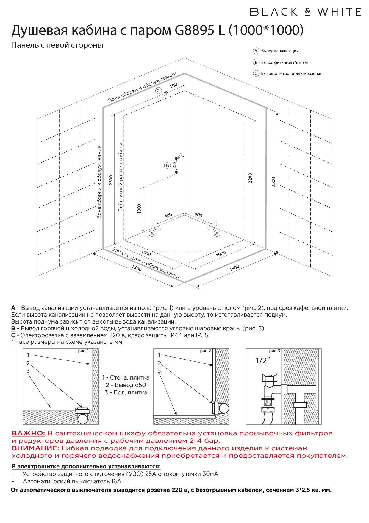 Душевяа кабина Black & White Galaxy G8895 100х100х220